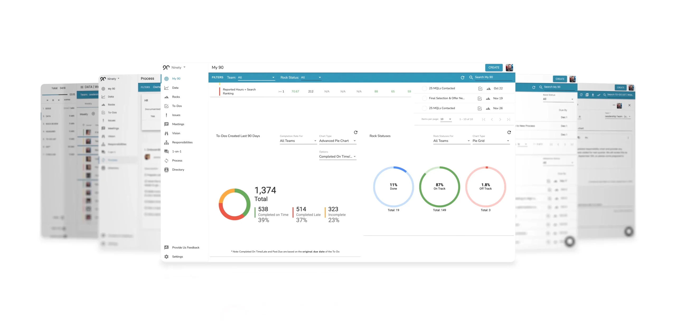 Ninety is an innovative, cloud-based business operating system (BOS) that helps organizations focus, align, and thrive.Whether you heard about Ninety online, from a friend, or from your business coach, here’s what you need to know about our interconnected platform — including where we came from and where we can help you go.