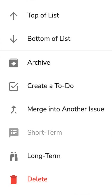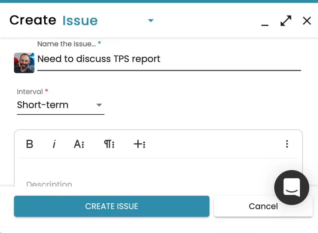 Click on any To-Do, Rock, or Milestone and create an Issue from it so you can talk about it in your next team meeting.